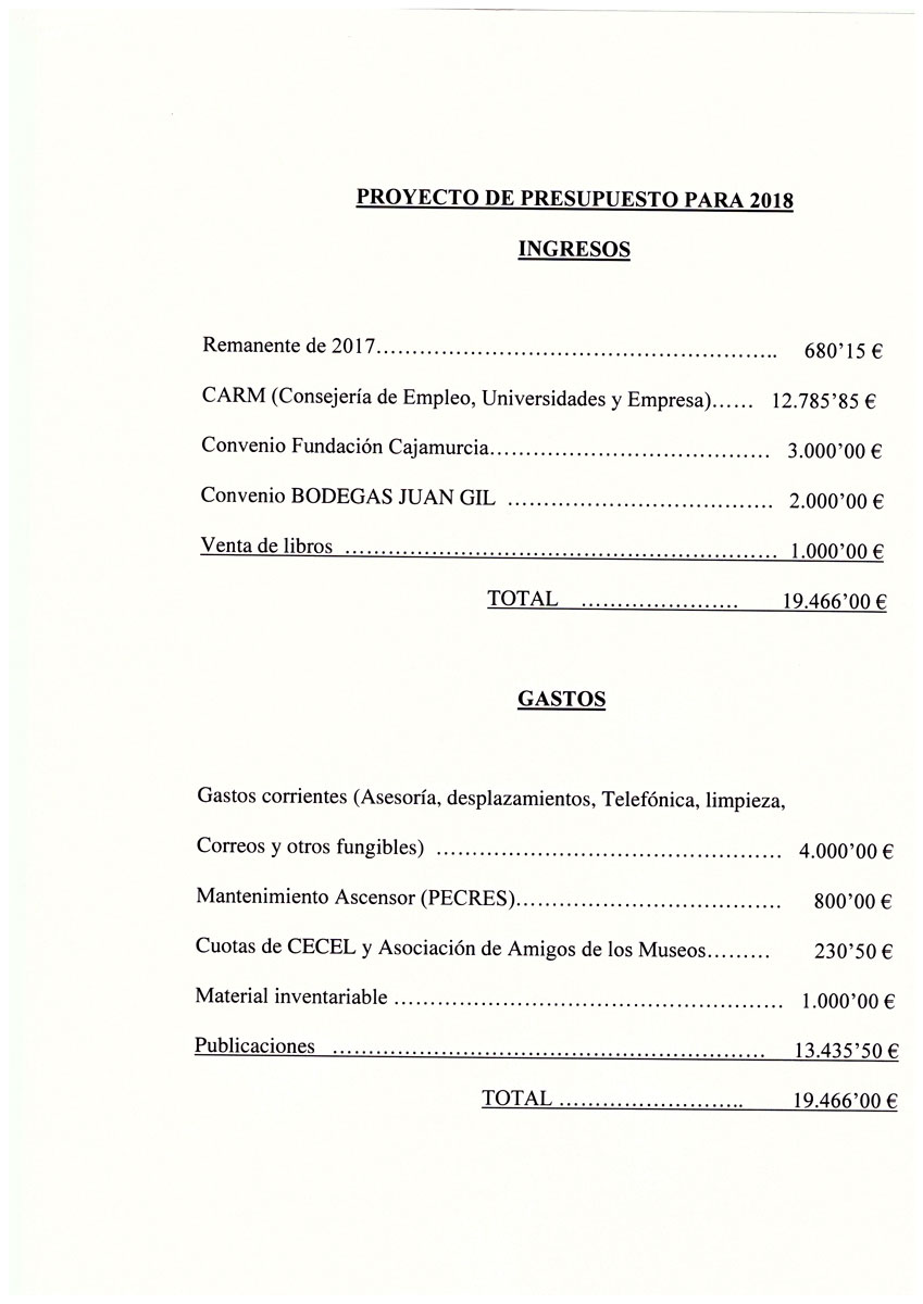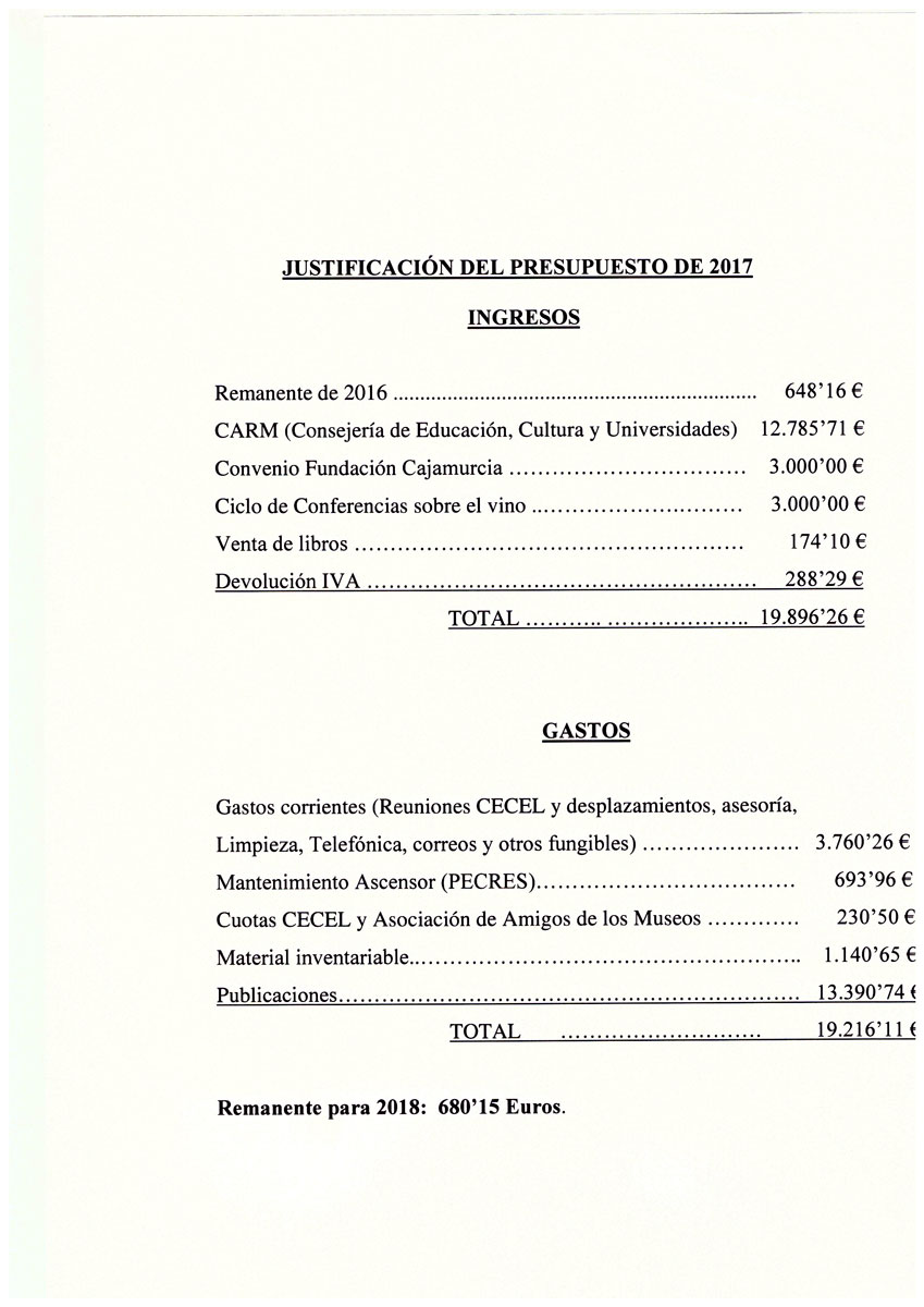Con fecha de 4 de abril de 2017 se ingresaron 3000 € por el Convenio firmado con Fundación Cajamurcia.